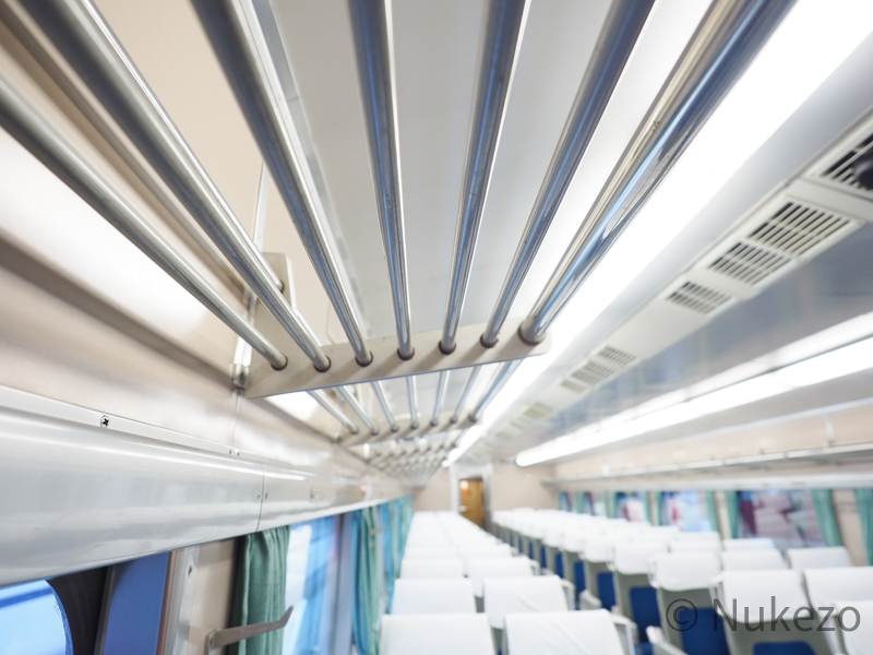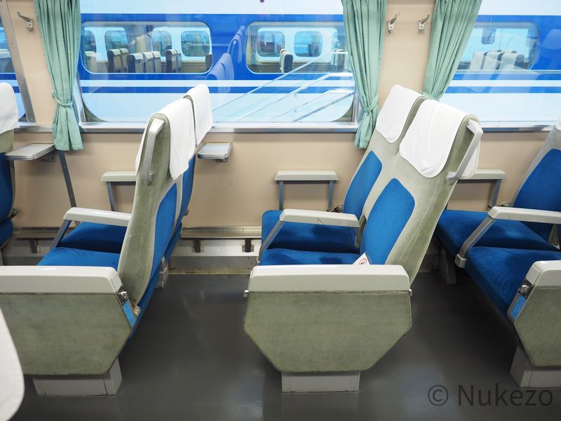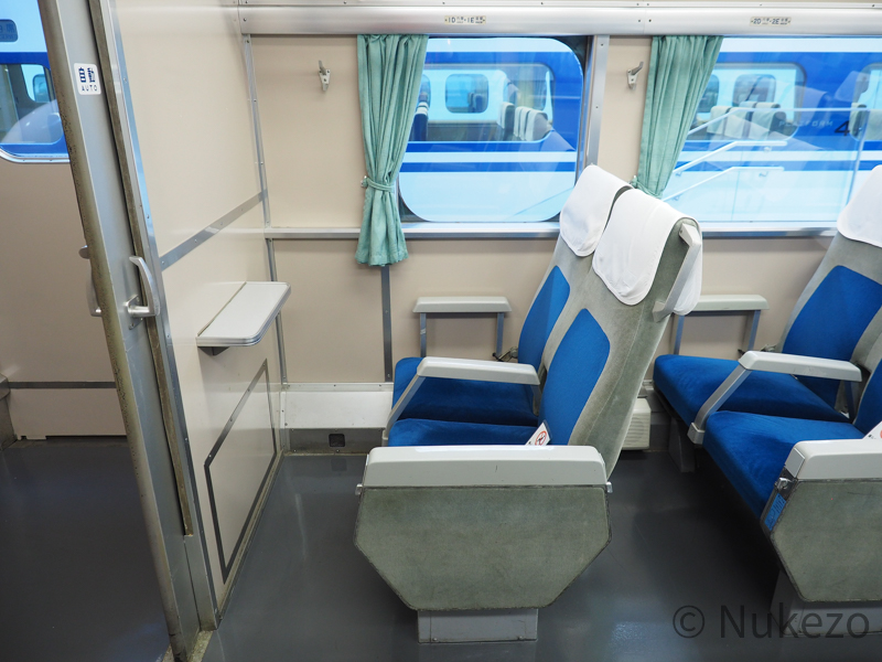 「リニア・鉄道館」の保存ポリシーから、座席への着席・引出式テーブルの展開・カーテンの展開禁止されているため、写真では特に何もいじらないまま撮影しています。もちろん、当サイトでも上記ルールを全て遵守して撮影しています。