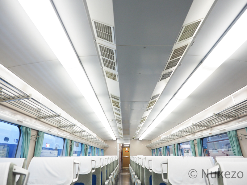 0系の普通車の“象徴”といっても過言ではない、グレーとブルーのモケットをまとった転換式クロスシートがズラッと並んでいます(→「備考」も参照)