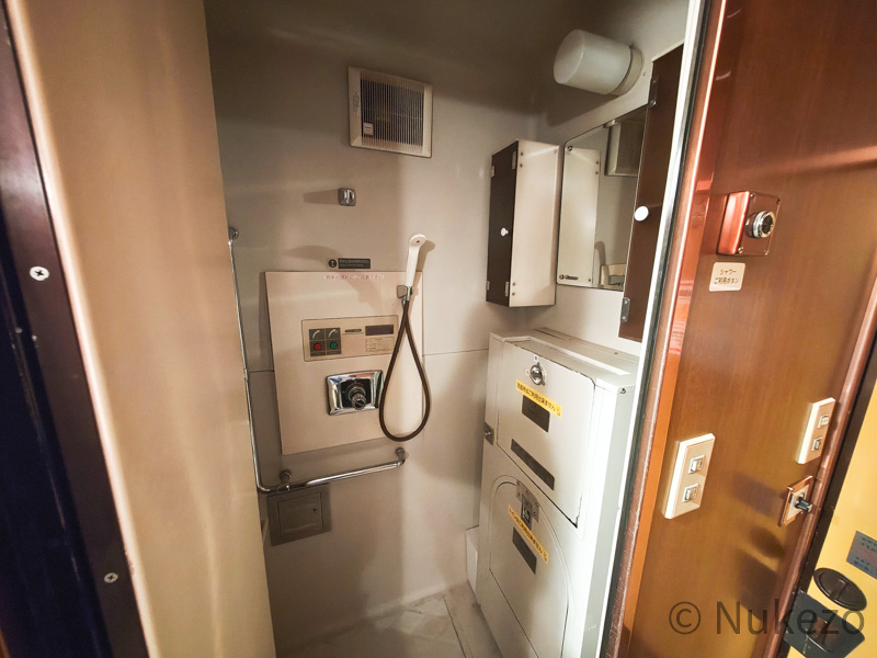 ユメノバでは使用中止となっているシャワーですが、>>北斗星スクエアの保存車では車内の共用シャワーが現在も使用可能です。興味のある方はぜひ併せてご覧になってみてください。
