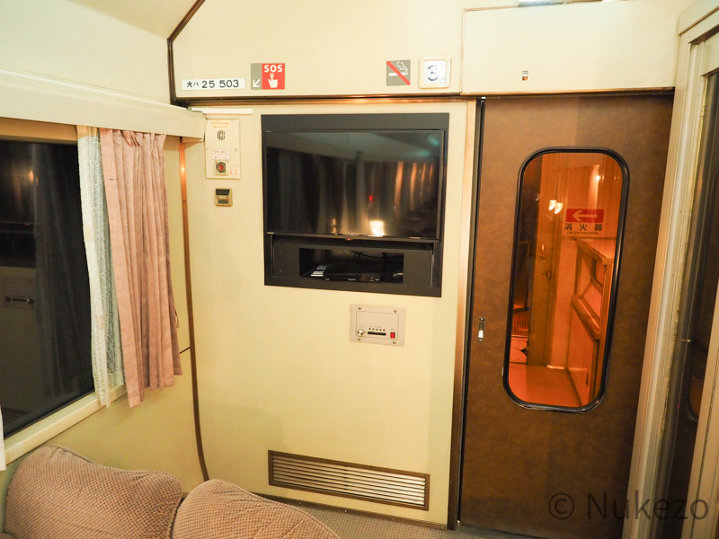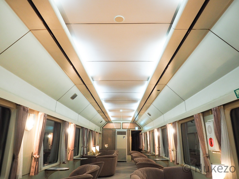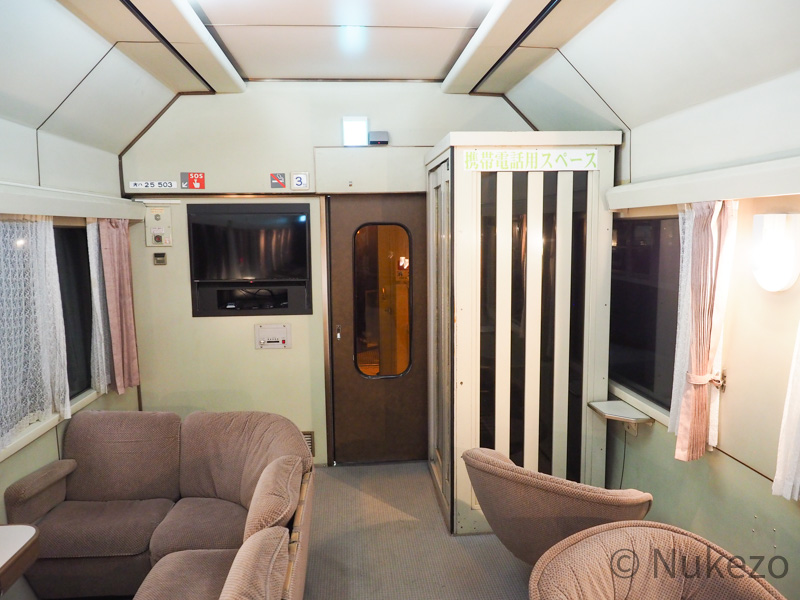 続いて3号車のロビーカーに移ります。こちらはオハ25 503で、JR東日本が担当する「北斗星」の6号車に連結されていました。