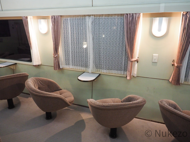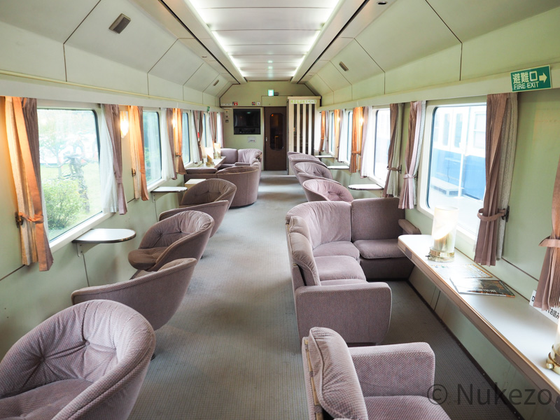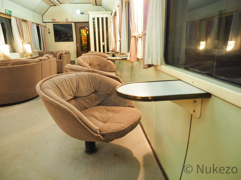 JR東日本が保有する「北斗星」編成のロビーは、1両まるごとロビーでした。