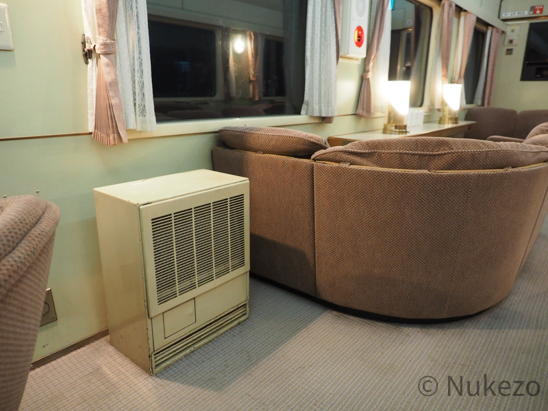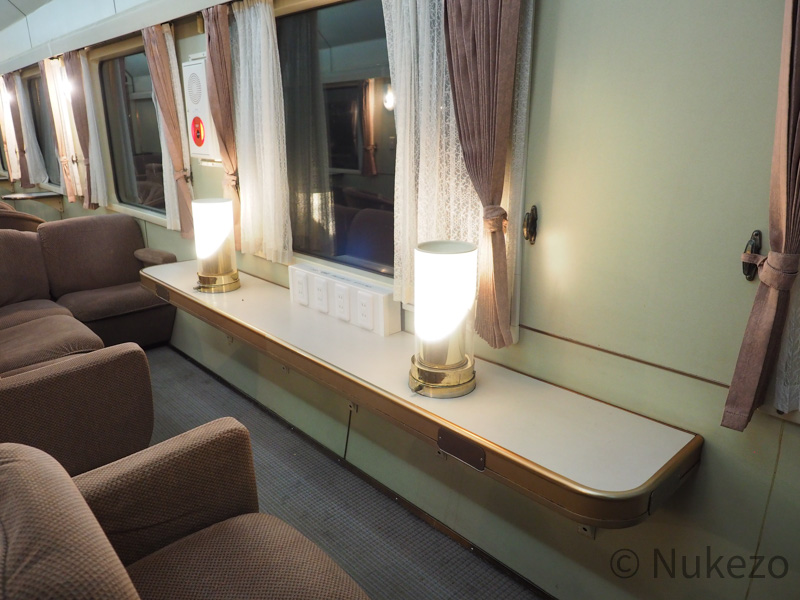 ユメノバの北斗星は、「ロイヤル」を除いて寝台・個室にコンセントがありません。従って、充電できるのは基本的にこのロビーカーのみとなります。