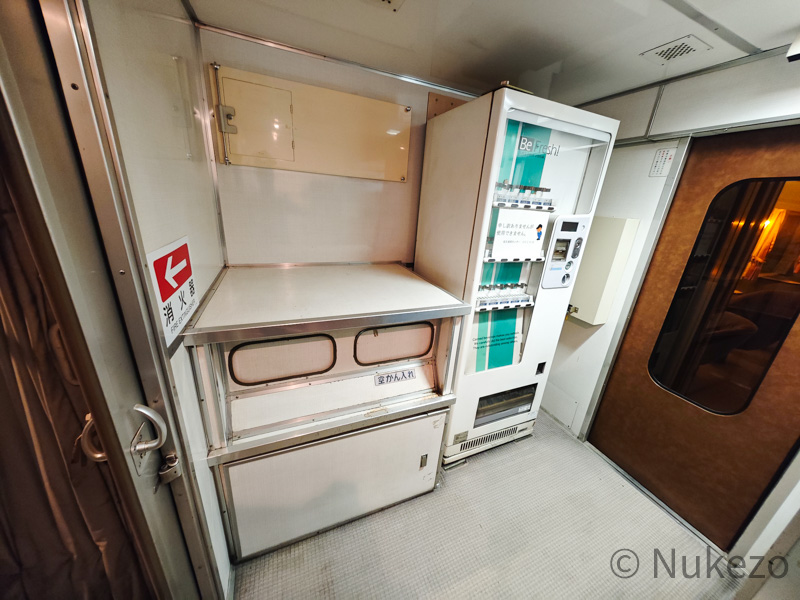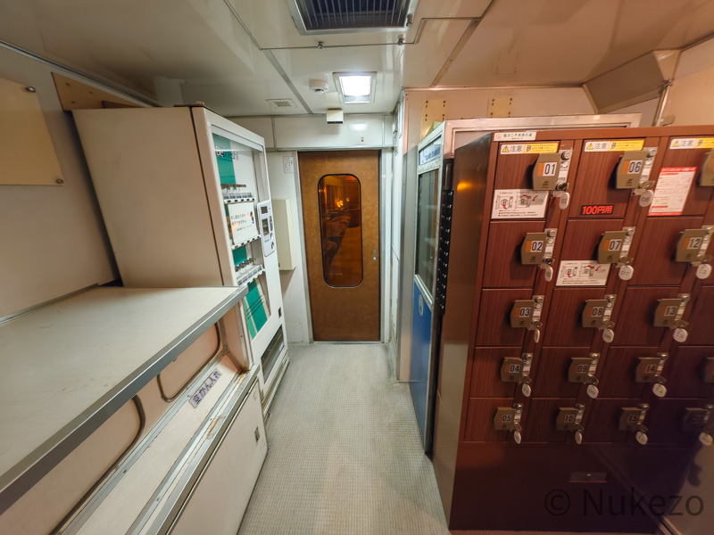 デッキ部分には小型のコインロッカー(20個)があり、貴重品などはこちらで保管できます。自動販売機も残ってはいますが、こちらは「北斗星」の末期から使用停止となっていました。