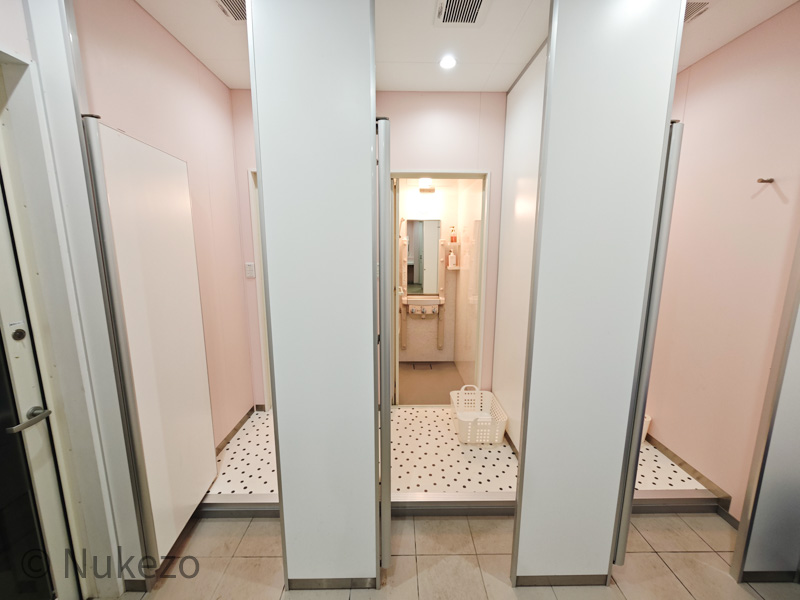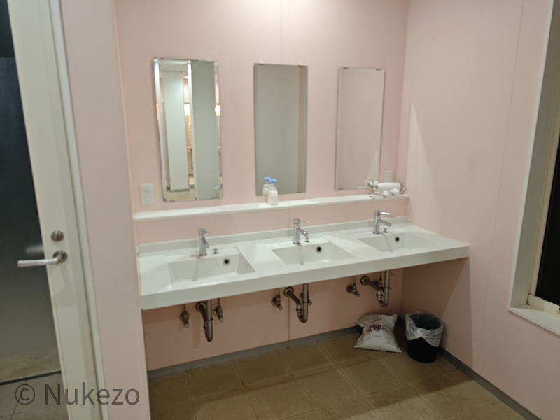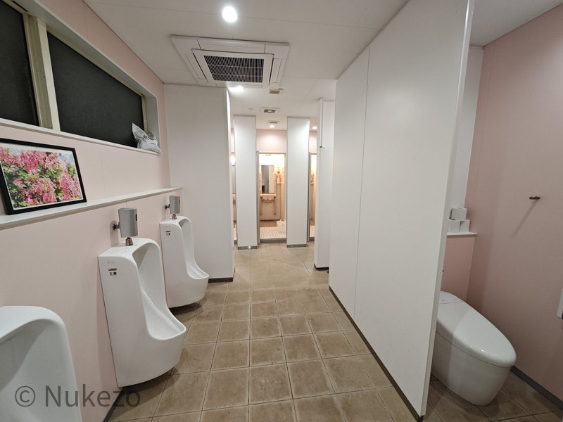 写真は男性用のエリアで撮影していますが、女性用エリアも(小便器がないのを除いて)ほぼ同一の構造になっているそうです。
