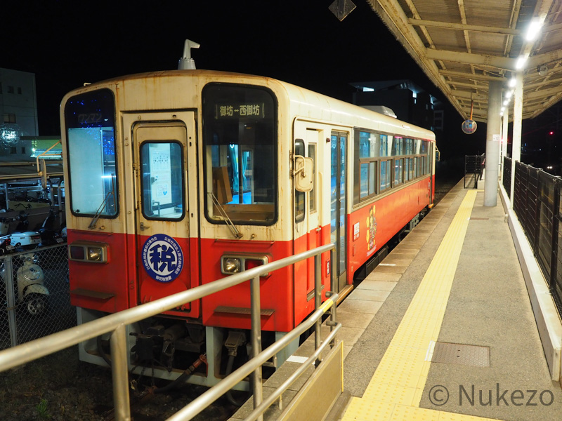 前置きが長くなりましたが、写真は御坊駅でのカット。信楽高原鉄道からの譲受車で、塗色は紀州鉄道への移籍後に赤とクリームのツートンカラーに変更されています。