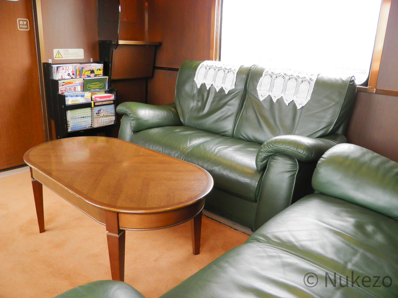 基本的な見付は>>「北斗星」のロイヤル(※ユメノバ保存車の項参照)に近いですが、車内の調度品や配置がやや異なるほか、補助ベッドは背もたれを手前にスライドさせるタイプなどの違いがありました。
