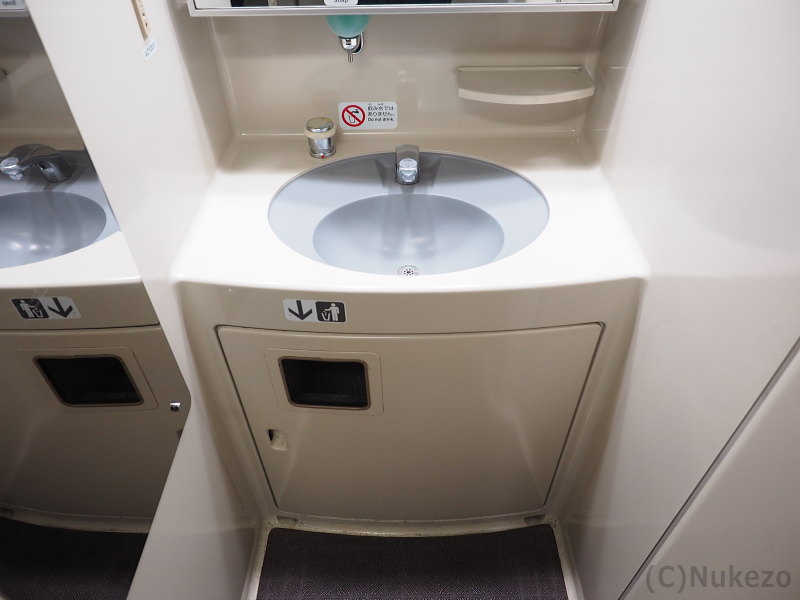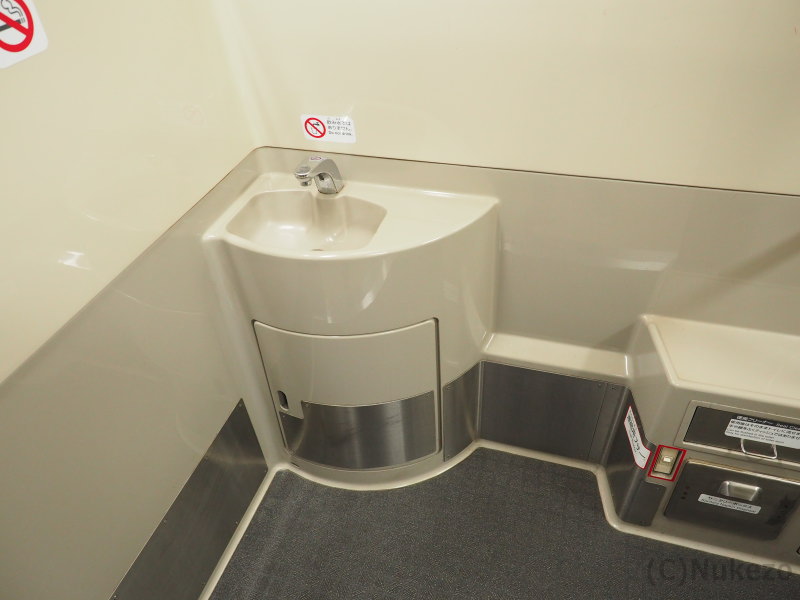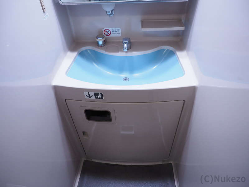 このタイプの洗面台はC1編成で試用されたにとどまり、量産車のC2編成以降では上の項で紹介したタイプへ移行しました。