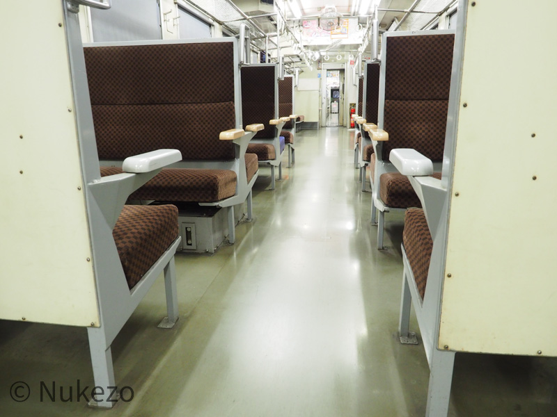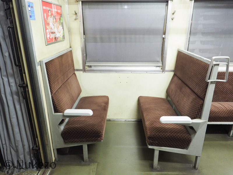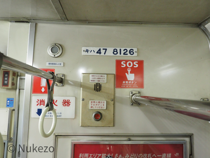 壁際は、貫通扉の関係でやや狭くなっていますが、これはキハ47形共通の仕様ですね。実際に見ると、写真以上に狭いです(苦笑)。