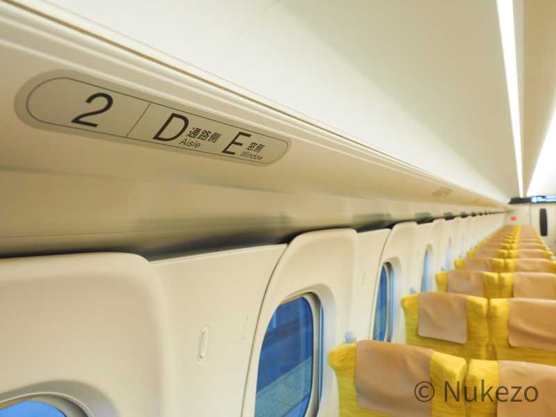 座席番号は、荷物棚のフチにシールで貼り付けられています。体裁自体は、他のN700S系列と同一ですね。