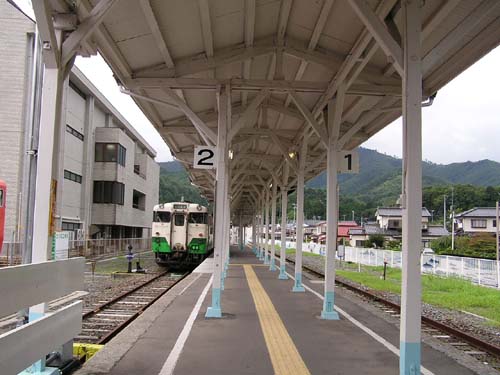 (↑)小牛田駅に来る女川行きの列車。/ The train of the Ishinomaki Line.