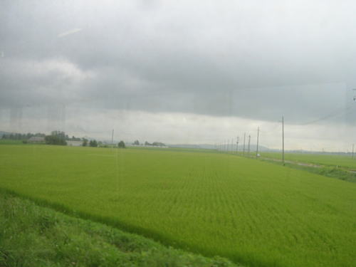 (↑)小牛田駅を出てすぐの車窓。/ After leaving Kogota Station