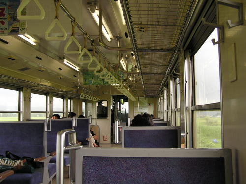 (↑)女川行きの車内。昼間ということもあってガラガラ。/ Inside of the train