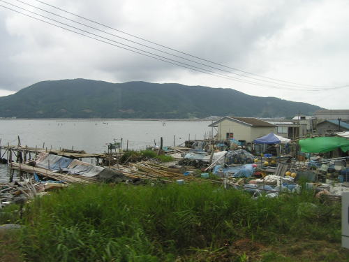 (↑)車窓に広がる漁港。/ a fishing port near Onagawa