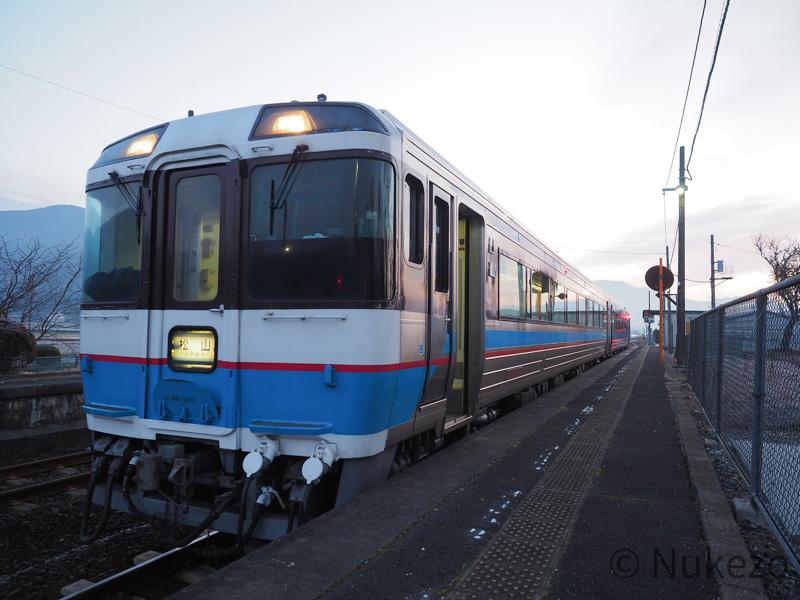 - バスが遅れても、松山6:49発の>>特急「宇和海」3号に間に合えば伊予大洲で911Dに追いつける。…が、いずれにしても個人的にはやはり前泊を推奨)
