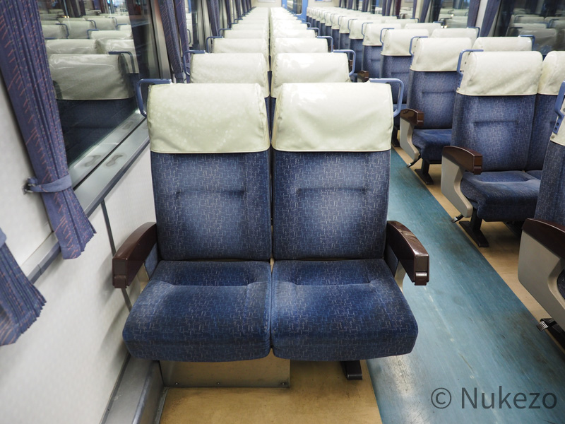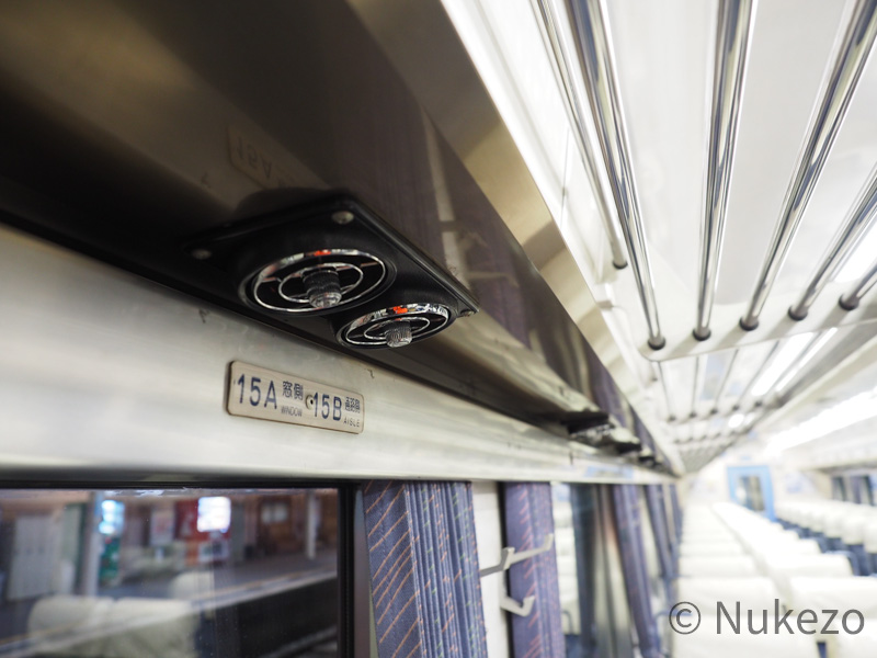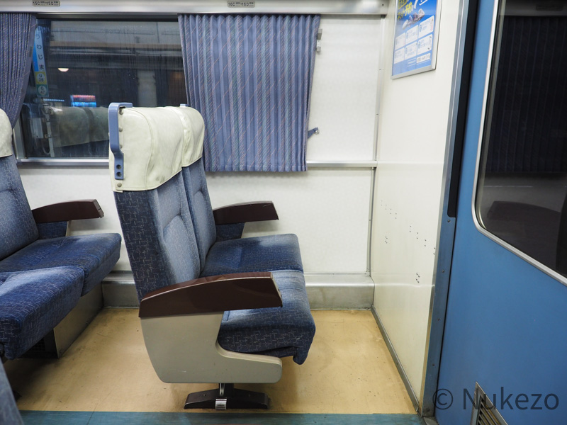 「リクライニングできなくても特急用の座席なんでしょ?」…と思うことなかれ。背もたれが見ての通りほぼ直立なので、(腰はもちろん)特に首に負担がかかります。見た目のわりに、居住性はあまり高いとは言えないように感じました。