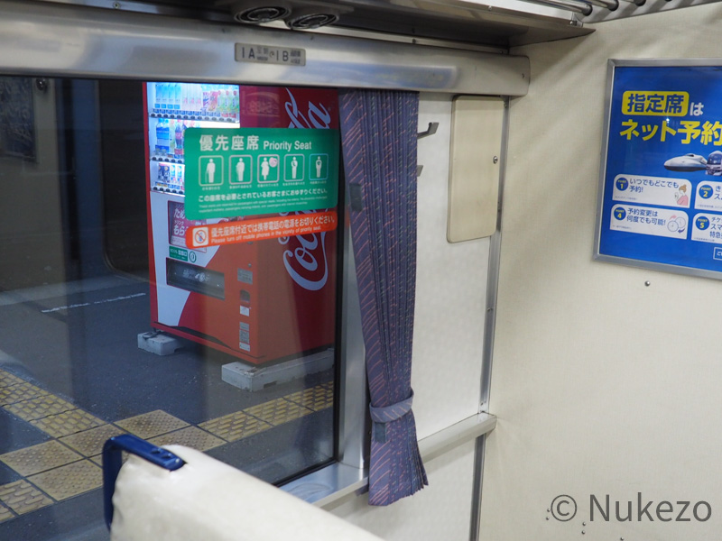 車端部区画の片側(各車1A/B・16C/D席)は優先席となっています。一見“ほぼ特急車”なキハ185系3100番台ではありますが、こういうところはしっかり普通列車用としての体裁を整えている印象でした。