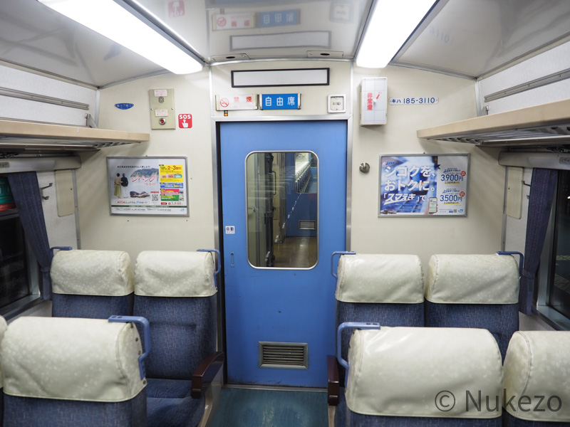 キハ185系3100番台には、大きく分けて2通りの内装がありますが、まずは“多数派”から見ていきます。