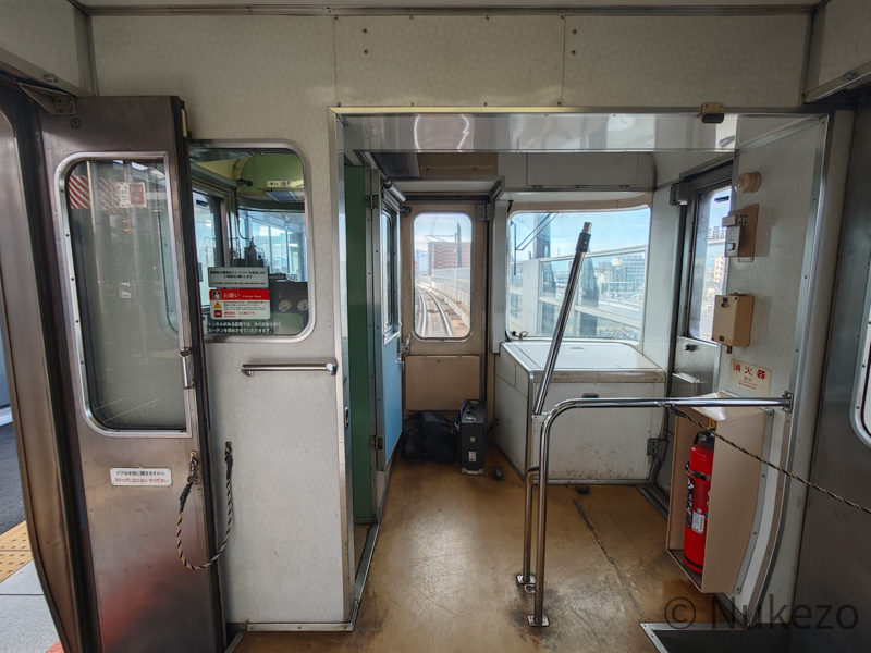 運転席直後のデッキには車掌台側(進行方向右側)の仕切りに窓が入っており、デッキ越しではありますが前面展望が楽しめます。進行方向前寄り車両の16A・16B席がこちらなので、興味のある方はぜひ始発駅で並ぶなどして狙ってみてください。